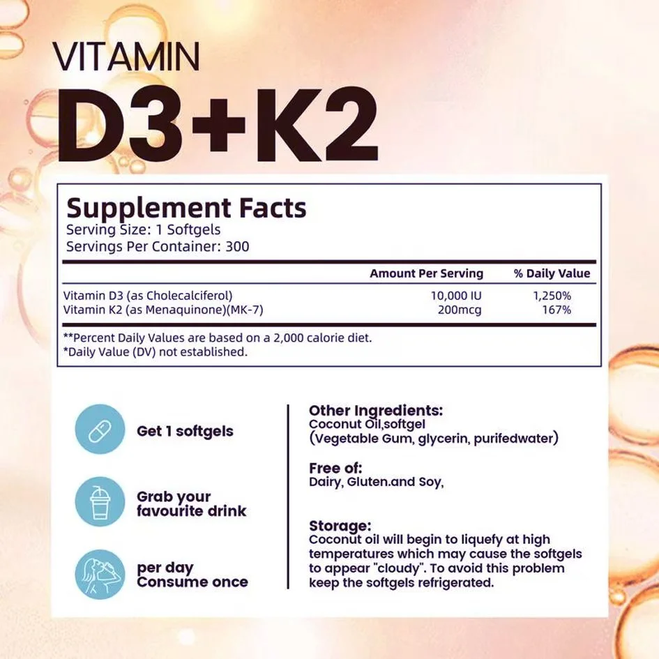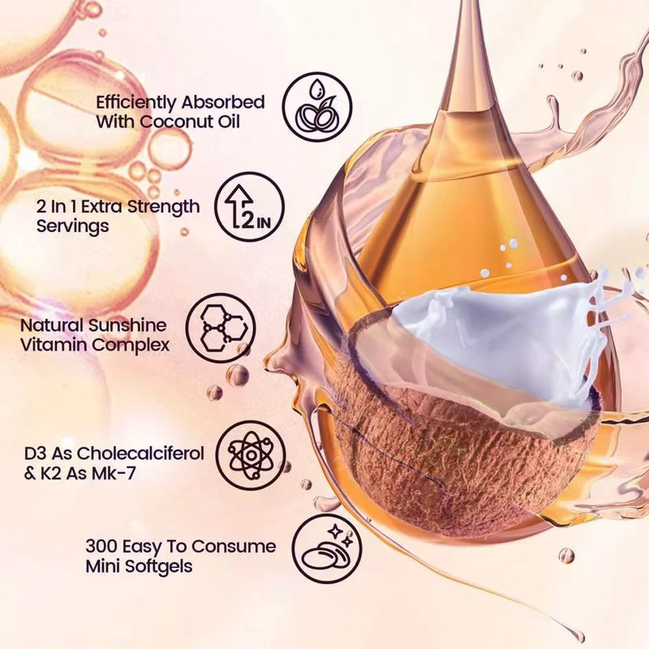 D3 & K2 Bone Health SoftgelsD3 & K2 Bone Health Softgels | 300 Capsules with Clinically Validated Dosage | Triple-Action Support for Joints/Immunity/Heart Health
